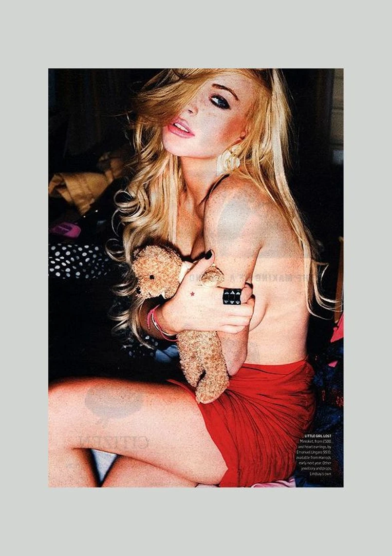 Lindsay rozbierała się już nie raz i nie dwa. Jednak jak widać wcale nie zamierza poprzestać na kilku seksownych sesjach. Tym razem zaprezentowała swoje odchudzone i jakby ujędrnione ciało w magazynie "The Sunday Times Style". Aktorka występuje na zdjęciach wystylizowana na nastoletnią lolitkę, tuląc do bujnej nagiej piersi pluszowego misia.