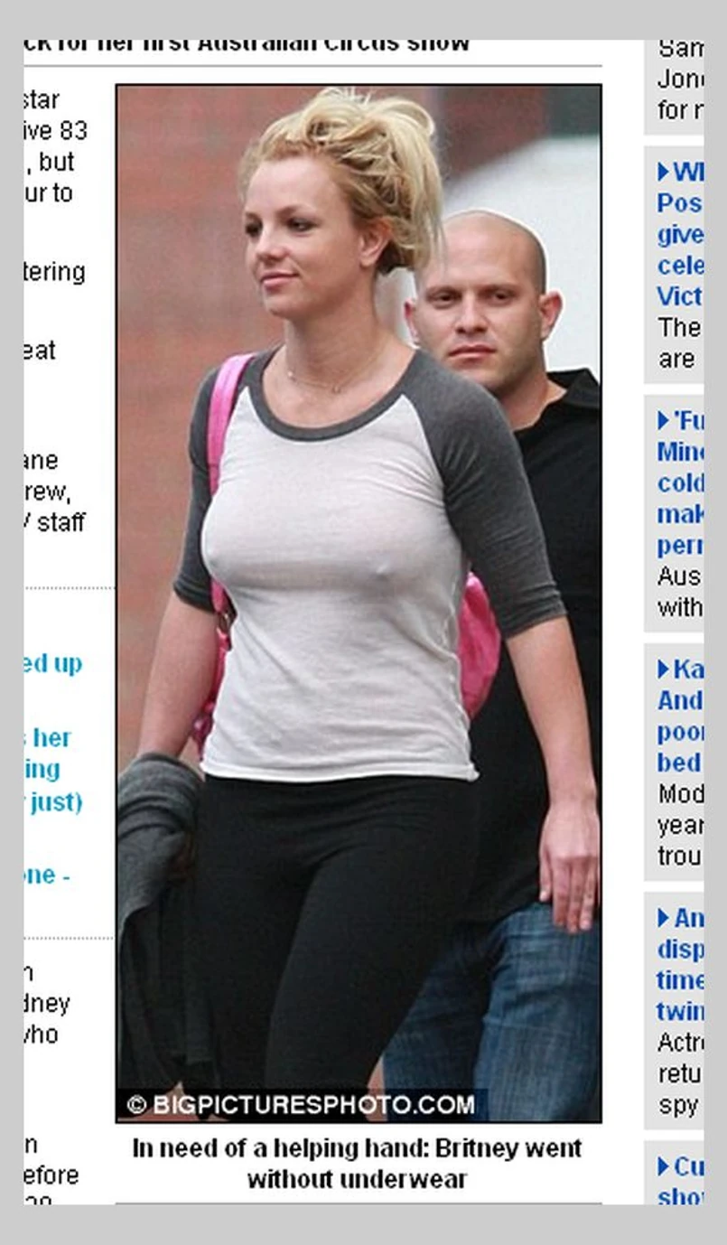 Mama dwóch synków na przemian chudła i tyła, co niezbyt korzystnie odbiło się na jej figurze. Britney jednak zdaje się nie zwracać uwagi na swoje braki i na pełnym luzie pokazała się w lekko przejrzystej bluzeczce i bez stanika.