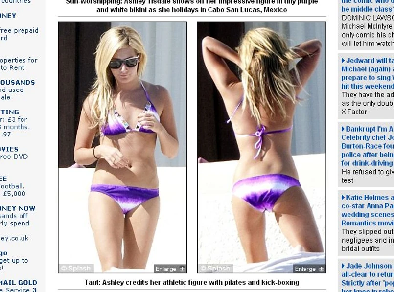 Ashley, wzorem licznych osób z jej branży, postanowiła zażyć trochę odpoczynku, plażując. Rozdziała się więc do fioletowego bikini i zaległa na leżaku. Wraz z 24-letnią gwiazdą odpoczywali jej rodzice oraz jej chłopak.