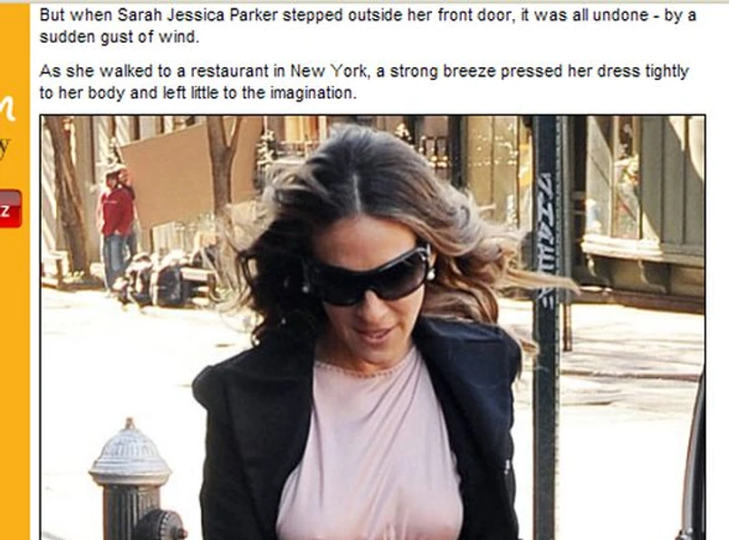 Sarah wybrała delikatną suknię w kolorze pudrowego różu, do niej założyła fikuśne rajstopy oraz modne, ciężkie buty. I pewnie ta kreacja zostałaby okrzyknięta strzałem w dziesiątkę, gdyby nie warunki atmosferyczne. Silny wiatr oblepił nieco zbyt chude ciało gwiazdy materiałem, w wyniku czego nie wyglądała już ani apetycznie, ani nawet ładnie.