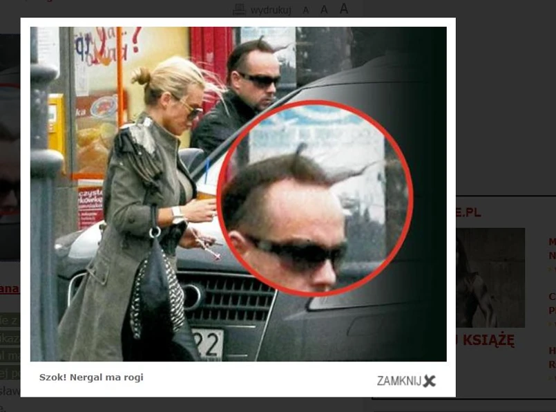 "Doda (26 l.) i Nergal wracali właśnie z kawy, oczywiście mocnej i czarnej jak piekielna smoła. Nagle nad imponującym czołem muzyka ukazały się dwa czarne jak noc rogi. Rzec można wręcz kozie. To jedyny do tej pory dowód, że Nergal ma jednak kontakty z >>ciemną stroną mocy<<. Choć na występach nie przypomina istoty ludzkiej, do tej pory nikomu nie udało się go jednoznacznie powiązać z piekłem."