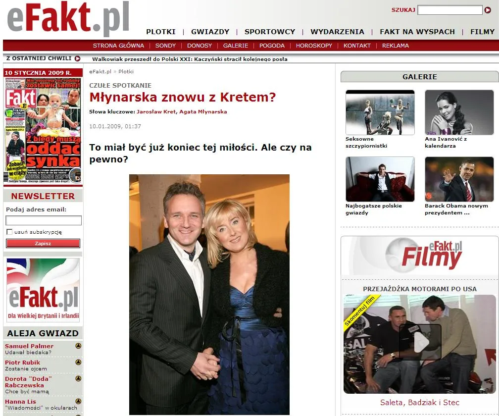 "Wszedłem w życie, w którym już istniały pewne zasadnicze elementy" - tak o swoim związku z Młynarską opowiadał niedawno na łamach kolorowego magazynu Jarosław Kret. "Jednym jest praca, praca, praca. Próbowałem ją zrozumieć nawet wtedy, gdy codziennie przynosiła pracę do domu" - dodał prezenter pogody. Niedwuznacznie dał do zrozumienia, że ich związek dobiegł końca również z powodu nadmiaru zajęć Agaty. Ona miała czas na wszystko. Ale dla niego za mało - czytamy w "Fakcie".