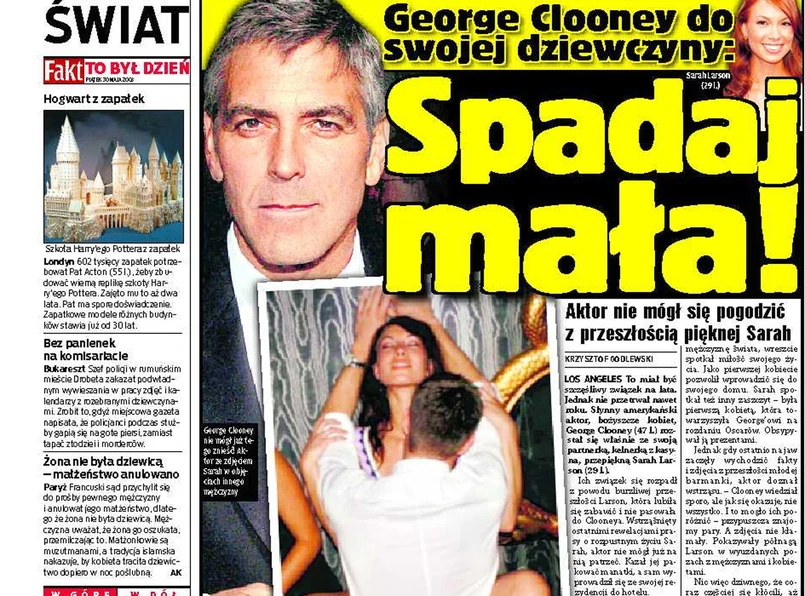 Nic więc dziwnego, że coraz częściej się kłócili, aż wreszcie George powiedział "dość!". Ciekawe, kto teraz poskleja złamane serce Clooneya? - zastanawia się "Fakt".
