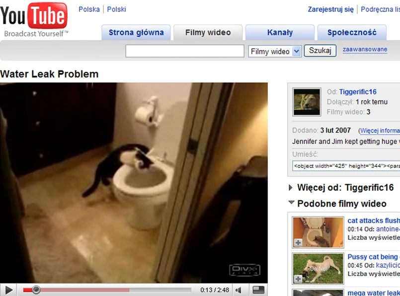 Ten film nagrało młode amerykańskie małżeństwo, które płaciło zbyt duże rachunki za wodę. My znaleźliśmy go na stronie wykop.pl. Użytkownicy tego serwisu nie mają wątpliwości, że bohaterem tej sceny jest prawdziwy kot marnotrawny. Bo w końcu jak inaczej nazwać takiego psuja?