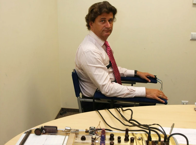 Tego urządzenia, stosowanego m.in. przez amerykańskich wywiadowców z CIA, nie sposób ponoć oszukać. Na wykresach widać, jak przepytywanemu skacze oddech, ciśnienie i tętno, a to może oznaczać, że mija się z prawdą.