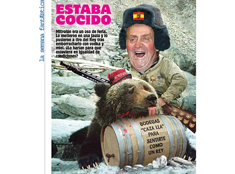 Fotomontaż w dziale satyrycznym baskijskiej gazety "Deia" prezentował monarchę wraz z niedźwiedziem i beczką wódki. Tytuł głosił: "Był zalany", przy czym autorzy nie sprecyzowali, czy chodziło o króla, czy o misia.