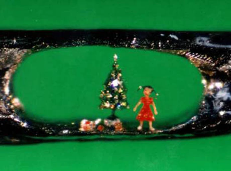 Drzewko jest udekorowane drobnymi święcącymi ozdobami, pod nim znajdują się prezenty, a obok nich stoi dziewczynka - tę miniaturową scenkę świąteczną stworzył rzeźbiarz z Birmingham Willard Wigan. Uformowawszy wszystkie elementy z nylonu, pomalował je włosem martwej muchy - przy wszystkich czynnościach posługując się mikroskopem.