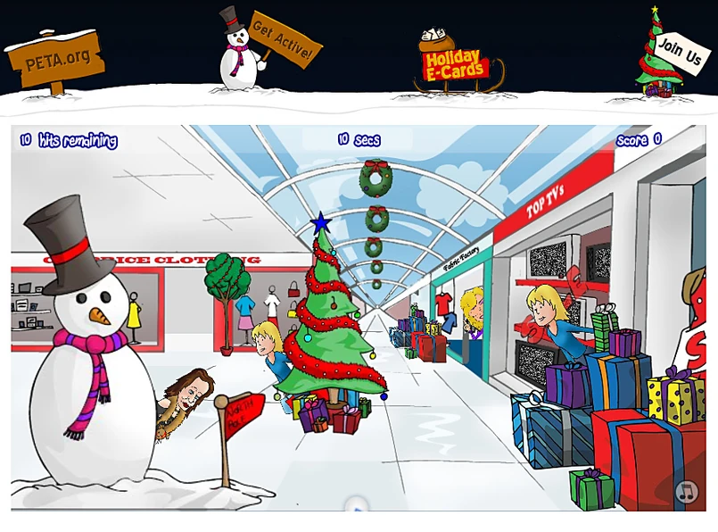 Sarah Palin znalazła się na widelcu PET-y (Ludzie na rzecz Etycznego Traktowania Zwierząt) za swoje nietypowe hobby – polowanie na łosie i wilki. W umieszczonej na stronie organizacji grze "Holiday Snowball Fight" internauci mogą za to wymierzyć jej sprawiedliwość śnieżką.