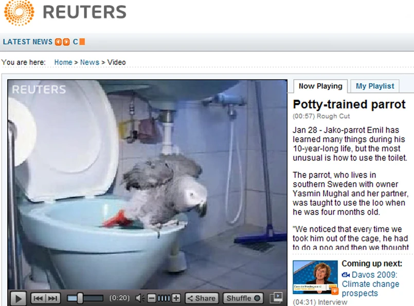 Pierwszych sztuczek nauczył się, gdy miał zaledwie 4 miesiące. Jednak zdecydowanie najbardziej niesamowitą rzeczą, jakiej nauczyła się papuga, jest korzystanie z toalety. Yasmin Mughal, właścicielce i osobistej trenerce Emila, szybko przestały się podobać niezbyt przyjemne niespodzianki, które ptak zostawiał w różnych miejscach jej mieszkania. W końcu zaniosła go do łazienki, postawiła na skraju muszli klozetowej i wytłumaczyła, do czego służy to wielkie bakelitowe ucho. Emil, będąc bardzo mądrą papugą, wszystko zrozumiał i od tej chwili załatwiał się tylko w toalecie. Niestety jeszcze nie umie spuszczać wody...