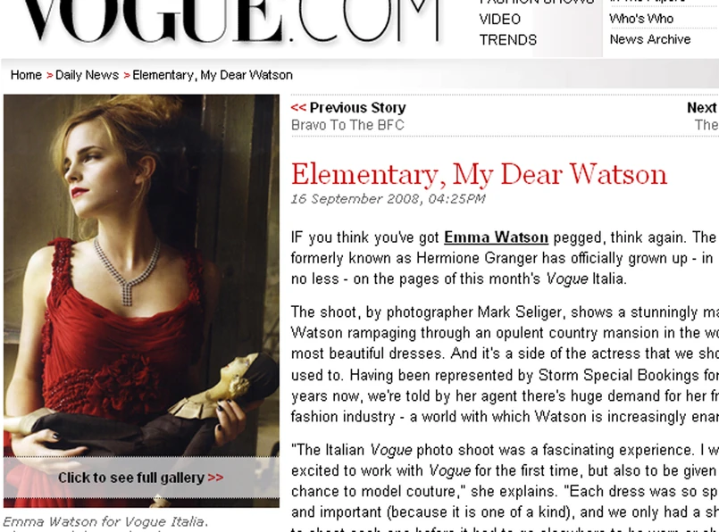 Zdjęcia Emmy do magazynu Vogue możesz obejrzeć tutaj, a pikantną sesję do "VS" tutaj.