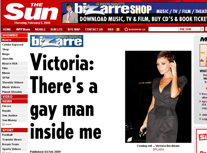 Choć naturalnie, nie "w ten sposób". Jeśli chodzi o heteroseksualnych facetów, toleruje tylko Davida i swoich synów. Za to przy gejach czuje się bezpiecznie i nie ma nic przeciwko temu, że uważają ją za swoją ikonę. Wręcz jej to pochlebia. Do tego stopnia fascynuje ją środowisko homoseksualne, że wyznała nawet: "W środku mnie siedzi gej, który chce wyjść na zewnątrz".