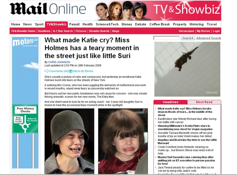 Katie Holmes to zazwyczaj ostoja spokoju. Jej kojący uśmiech sprawia, że wszyscy w jej otoczeniu czują się zrelaksowani. Jednak niedawno można było spotkać Katie na ulicach Nowego Yorku rozpaczliwie szlochającą. Czyżby historia tej obiecującej aktorki przeradzała się w dramatyczną historię niezrównoważonej Britney Spears?