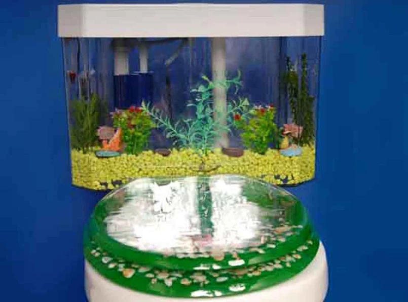 Rybki mają zagwarantowane urządzenie do filtrowania i utleniania wody. Jednym słowem ich mieszkanko działa jak zwykłe akwarium. Pływające wewnątrz rybki mogą się martwić tylko obciachem, że posłużyły designerom za wystrój kibelka.