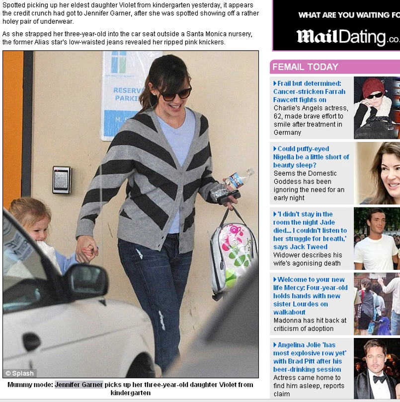 ... Jennifer Garner. Żona aktora Bena Afflecka pojawiła się tak ubrana pod przedszkolem, z którego odbierała córeczkę Violet. Aktorka bardzo się spieszyła, ponieważ w domu została 3-miesięczna Seraphina. Od razu widać, co dla kogo jest ważne w życiu.