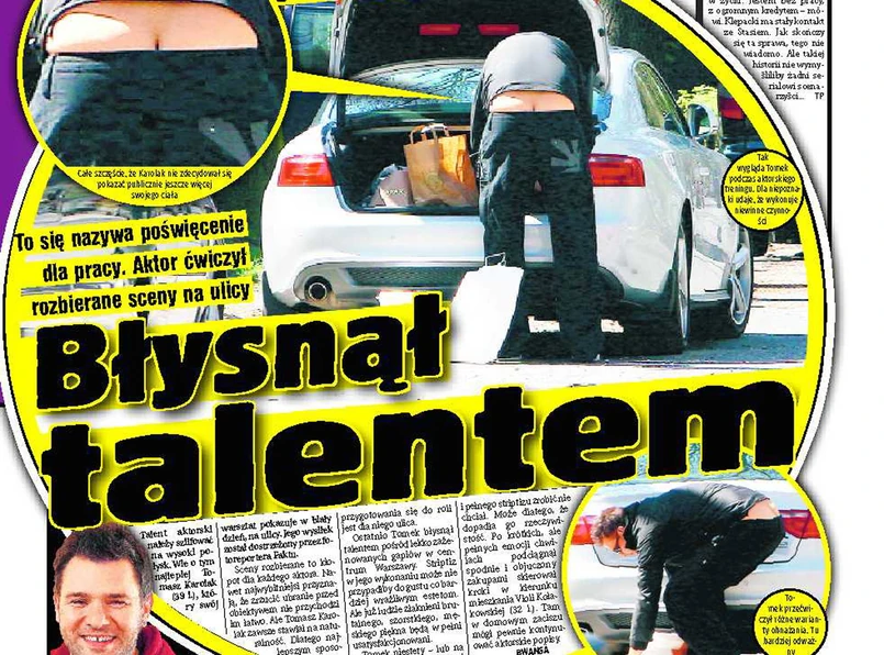 "Tam w domowym zaciszu mógł pewnie konytnuować aktorskie popisy" - kpi "Fakt" przypominając, że przecież sceny rozbierane to kłopot dla każdego aktora i nikomu nie przychodzi to łatwo.