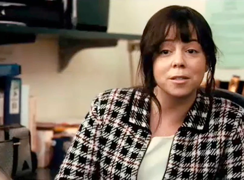 W à la chanelowskim tanim żakiecie w pepitkę i zupełnie bez makijażu wygląda cokolwiek niecodziennie. Niemal jak nie ta sama osoba. Na dodatek musiała przytyć do swojej roli kilka kilogramów, choć normalnie też na brak ciała nie narzeka. Ciekawe, czy i w jej przypadku sprawdzi się reguła nagradzania aktorek, które do roli pozwoliły się oszpecić?