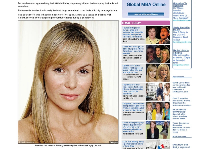 Amanda Holden ma 38 lat. Większość kobiet dobiegających czterdziestki nigdy nie zdecydowałaby się pokazać bez makijażu publicznie. Ona jednak nie miała przed tym oporów. Bez make-upu jednak Holden jest niemal nierozpoznawalna!