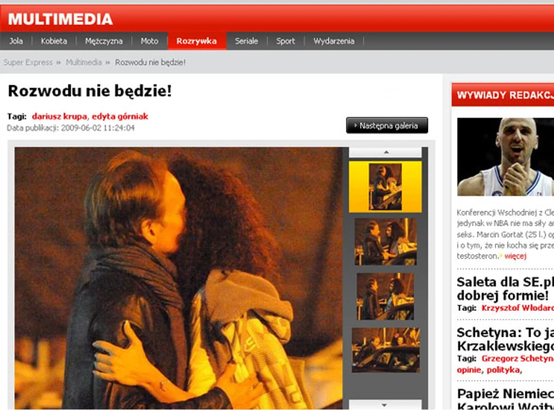 Gdy Edyta spotkała się z mężem na parkingu, para nie szczędziła sobie czułości. Darek szeptał Edycie do ucha czułe słówka i delikatnie gładził jej dłoń. „Informacje o naszym rozwodzie to plotki” - powiedział „Super Expressowi” Darek. Jakby tego było mało, zaprzeczył jakoby przestał pracować z artystką: „Jestem menedżerem Edyty” - dodał.