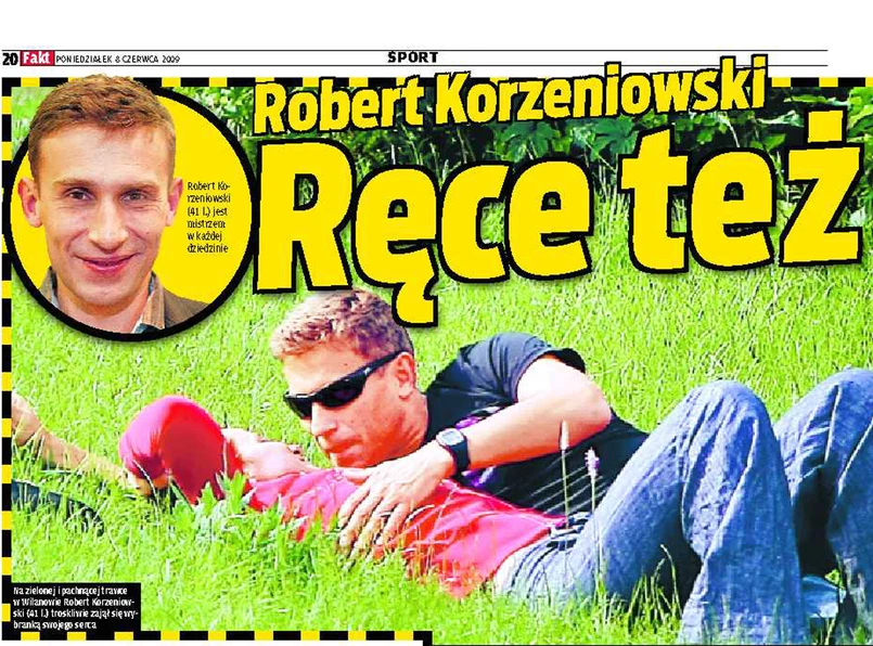 Najpierw był spacer, a potem odpoczynek na trawie. Robert Korzeniowski i jego Magda wylegiwali się, korzystając z promieni słońca. Ale nie było to takie sobie, bierne leżenie. Szef sportu w telewizji publicznej wytrwale manipulował przy bluzce i spodniach swojej partnerki - opisuje "Fakt".