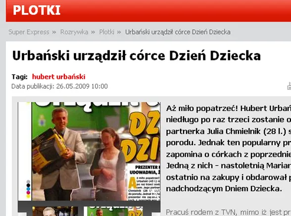 Hubert Urbański został ojcem. To już trzecie dziecko popularnego prezentera. Matką dziewczynki jest jego ukochana Julia Michalska, z którą od roku się spotyka. Para jest bardzo szczęśliwa i teraz ma zamiar skupić całą swoją uwagę na dziecku. Niestety młodzi rodzice nie zdradzili jeszcze, jak będzie miała na imię ich córeczka.