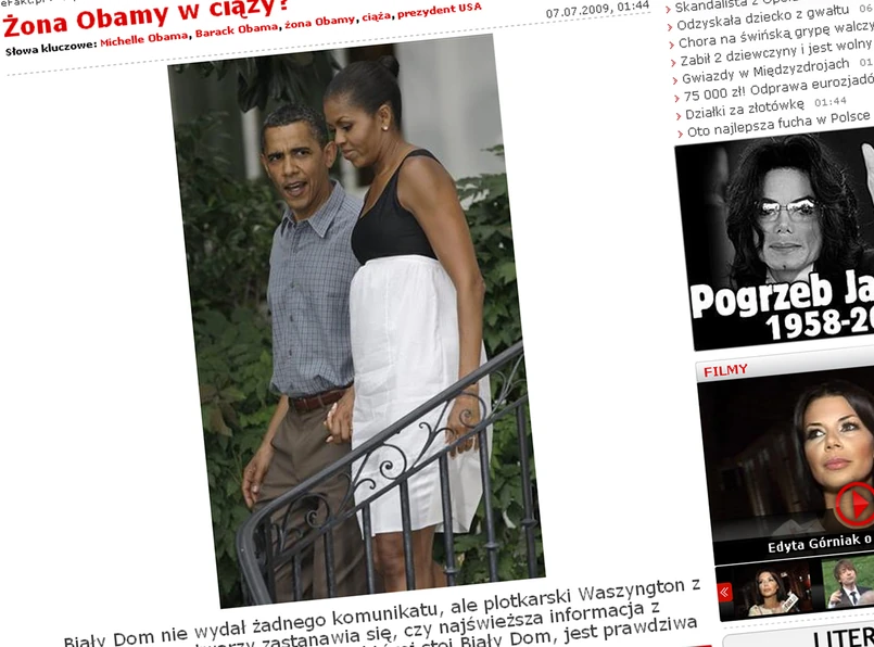 Amerykanie zastanawiali się, czy to strój wybrany z premedytacją, czy może małe modowe niedopatrzenie. Jednak pani Obamowa podczas oficjalnej wizyty w Moskwie znów założyła kreację odcinaną pod biustem, która ukrywała jej talię. Niemożliwe, by Michelle dwukrotnie naraziła się suknią na dociekania, czy jest w ciąży.