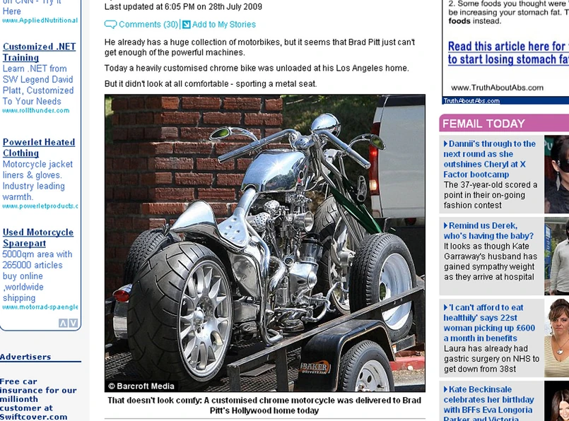 "To moja anonimowość. Z kaskiem na głowie, jestem tylko kolejnym d**kiem na ulicach" - wyznał Brad. Gdy dostarczono Pittowi pod dom jego nowy motocykl, on był akurat w innej cześci miasta, gdzie promował swój najnowszy film pt.: "Bękarty wojny". Zapewne gdy dowiedział się, że maszyna już na niego czeka, nie mógł się doczekać aż spotkanie się skończy i będzie mógł zająć miejsce za kierownicą swojego nowego nabytku.