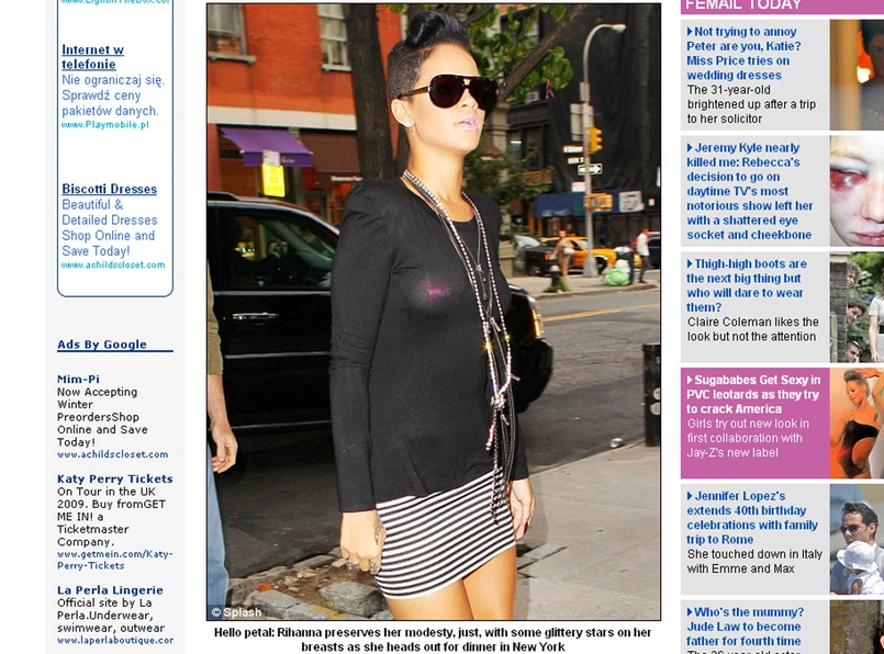 To nie pierwsza prezentacja sutków gwiazdy, Rihanna lubi korzystać z naklejek zasłaniających brodawki. Kilka tygodni temu zdecydowała się na srebrne, jednak jej strój był wówczas nieporównywalnie bardziej sexy - na nagie ciało zarzuciła jedynie marynarkę.