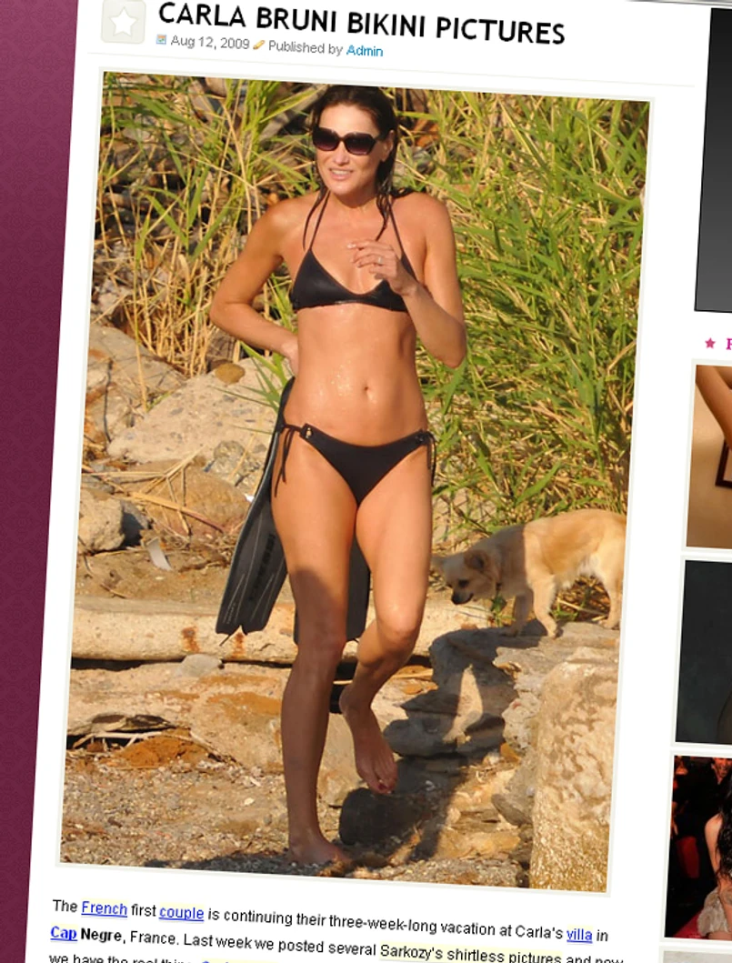 Pierwsza para Francji spędza swój trzytygodniowy urlop w posiadłości Carli we francuskiej miejscowości Cap Negre. Bruni wygląda wprost zjawiskowo. Widok jej gorącego ciała odzianego jedynie w bikini działa na wyobraźnię. Niestety, taki widok na co dzień ma tylko prezydent Sarkozy, który zapewne nie chce się nim dzielić z nikim więcej.