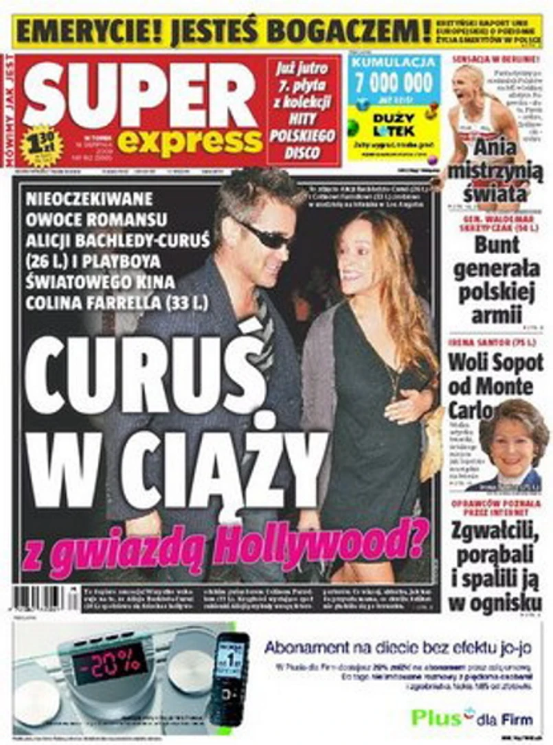 Fotoreporterzy przyłapali Polkę i jej amerykańskiego partnera na lotnisku w Los Angeles. Na zrobionych przez nich zdjęciach widać mocno zaokrąglony brzuszek Alicji Bachledy-Curuś - donosi "Super Express". Bulwarówka podkreśla, że w dodatku Polka gładziła się po brzuchu, tak jak robi to wiele kobiet spodziewających się dziecka.