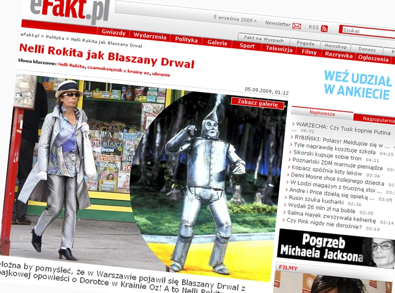Kiedy odeszła, sprzedawczyni długo jeszcze patrzyła za nią jak urzeczona. Bo Nelli Rokita wyglądała nieziemsko - zapewnia "Fakt". Błyszczący płaszcz posłanki odbijał promienie słoneczne jak lustro. Tak lśniącej zbroi nie powstydziłby się na pewno bajkowy Blaszany Drwal - przekonuje bulwarówka.