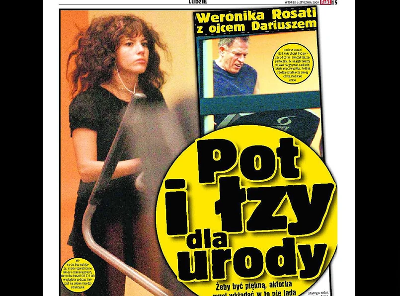 Weronika spędza mnóstwo czasu z ojcem Dariuszem. Chodzą ze sobą niemal wszędzie. Były minister finansów pilnował jej nawet, kiedy aktorka bawiła się niedawno w towarzystwie młodego przystojniaka w teatrze. Nic więc dziwnego, że gdy Weronika idzie na siłownię, ojciec również jej towarzyszy - pisze "Fakt".