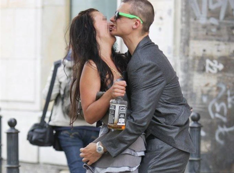 Aktor i jego zgrabna znajoma ubrani w wieczorowe stroje spacerowali o poranku po ulicach Warszawy, obściskując się i popijając z butelki po drogiej whisky - pisze "Fakt".