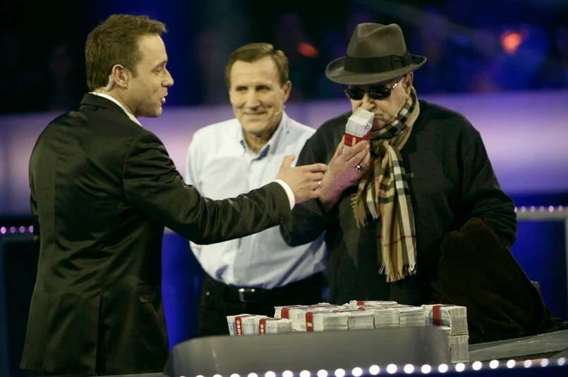 Program "Postaw na milion" prowadzi Łukasz Nowicki, aktor i oczywiście syn słynnego Jana Nowickiego. Jakież musiało być zdziwienie Łukasza, gdy podczas nagrania programu do studia wszedł jego ojciec ze swoim kolegą, piłkarzem Wisły Kraków Ryszardem Sarnatem.