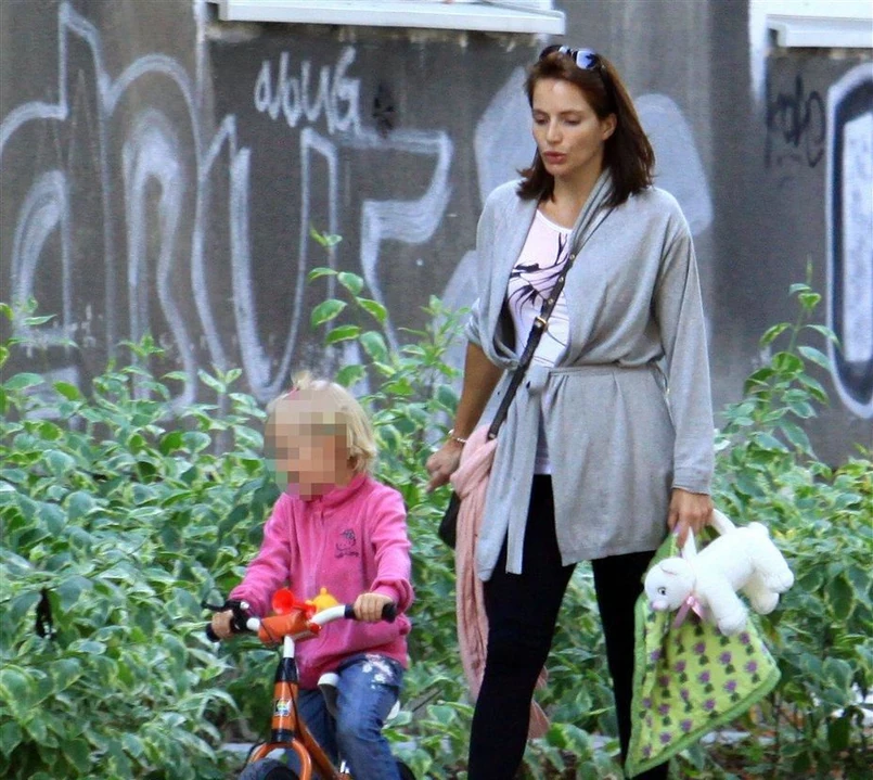 W drodze powrotnej do domu, gdy Lena zajadała się swoją bułeczką, aktorka cierpliwie niosła rowerek córki. Nic tylko pozazdrościć takiej świetnej mamy!
