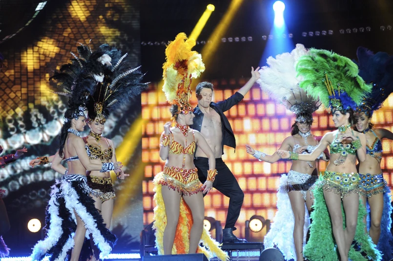 Wokalista grupy Volver, Mariusz Totoszko pokazał klatę podczas Sylwestrowego koncertu Polsatu.