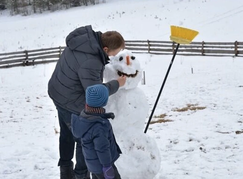 Nieczęsto można mieć okazję ulepić bałwana w Wielkanoc. Dlatego Donald Tusk wraz z wnukiem postanowili wykorzystać zalegające pokłady śniegu.
