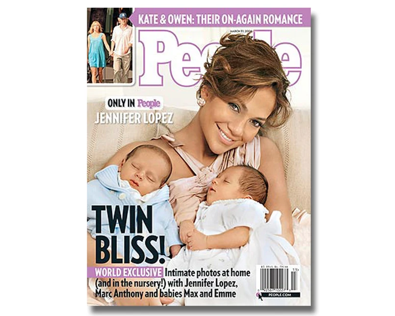 To już niemal tradycja. Bo wcześniej, jeszcze przed J.Lo, na okładce tej samej amerykańskiej gazety swe nowo narodzone pociechy zaprezentowały Christina Aguilera i Nicole Richie. Teraz - elegancko ubrana, w spiętych włosach i delikatnym makijażu - dumnie prezentuje się Jennifer.