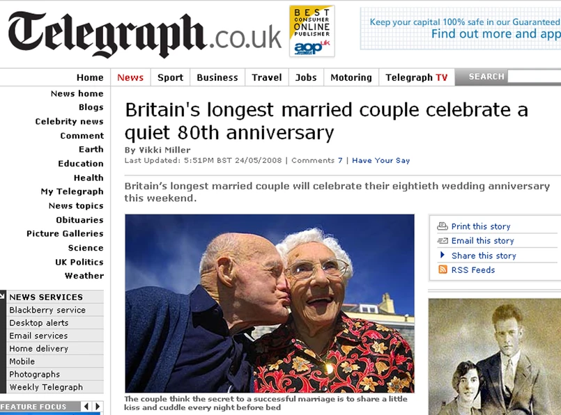 Jak państwo Milford uczczą osiemdziesiątą rocznicę ślubu? Spędzą wspólnie spokojny weekend. "Z naszymi latami, to wszystko czego potrzebujemy" - mówi Frank Milford. Para Brytyjczyków sięgnęła rekordu państwa Arrowsmith z Hereford, którzy trzy lata temu świętowali "dębową" rocznicę i trafili do Księgi Rekordów Guinessa.