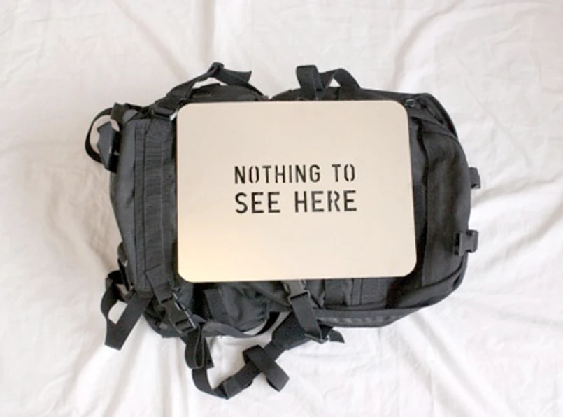 Metalowe tabliczki są duże, ale na tyle lekkie by nie przeszkadzały w noszeniu torby, czy plecaka. Dzięki nim możemy pokazać ochronie lotniska, co myślimy o surowych zabezpieczeniach przed terrorystami.