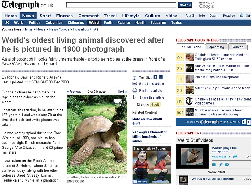 Za najstarszego żółwia na świecie do tej pory uznawano Harriet, wielkiego żółwia lądowego z Galapagos. Jednak Harriet zmarła w 2005 w wieku 175 lat w Australii.