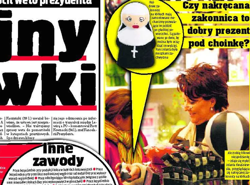 Jolanta Kwaśniewska znana jest z lekcji stylu, jakich udziela Polakom w swoim programie telewizyjnym. Ale nakręcane zakonnice na kółkach to przykład złego gustu, zwłaszcza na Boże Narodzenie - oburza się "Fakt".
