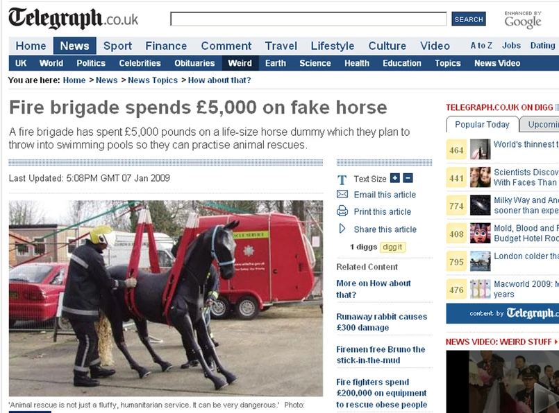 Gumowy koń choć dmuchany, nie jest lekki jak piórko. 230 kilogramów ma sprawiać nieco problemów - w końcu chodzi o zachowanie realizmu. Stacjonując w wiejskiej okolicy, strażacy z jednostki z Wiltshire zbyt często mają doczynienia z podobnymi wypadkami, by pozwolić sobie na błędy.