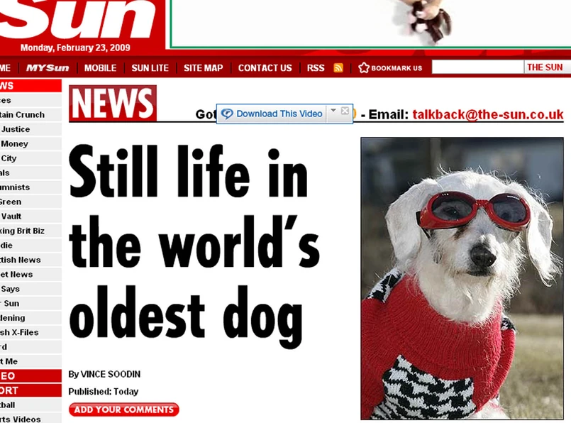 Channel zastąpiła na podium dla najstarszego psa świata labradorkę Bellę, która zdechła pod koniec zeszłego roku. Bella miała podobno 29 lat - czyli 203 w psiej rachubie.