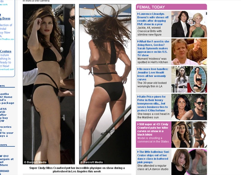 Topmodelka zdaje sobie sprawę z upływu czasu, jednak walczy z jego objawami tylko i wyłącznie dietą i ćwiczeniami. Jej ciało nosi znamiona dwóch porodów, co tylko dodaje mu seksapilu – nikt nie odmówi mu naturalności. Sama Crawford ocenia siebie następująco: „Wyglądam całkiem nieźle jak na moje 43 lata, ale to już nie to samo, co wtedy, gdy miałam 23”.