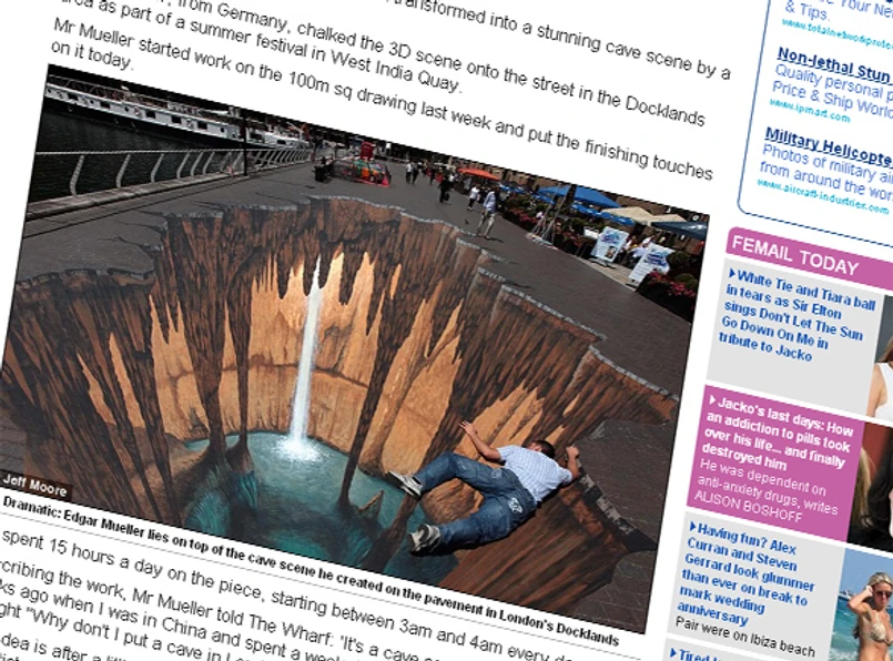 Ten fragment londyńskiego chodnika został przekształcony w zapierającą dech w piersiach jaskinię. Niemiecki artysta Edgar Mueller namalował kredą trójwymiarowy obraz na ulicy. Wszystko odbyło się w ramach letniego festiwalu na West India Quay.