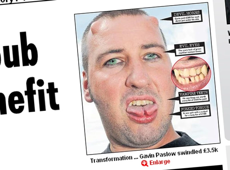 Wyjaśnił im, że pieniądze z zasiłku były mu naprawdę potrzebne na operacje, dzięki którym może się pochwalić zębami jak u wampira, rozciętym językiem, a nawet wypustkami imitującymi rogi na czole. Nosi także zielone soczewki kontaktowe, które mają imitować gadzie oczy. Ma nadzieję, że już niedługo w pełni przeistoczy się w Belzebuba.