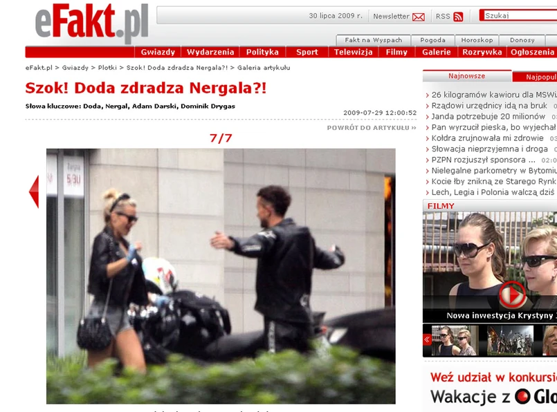 Reporterom bulwarówki udało się dopaść Nergala po jego chicagowskim koncercie. Zapytany o nagonkę mediów, która się wokół niego rozszalała, odpowiada: "Takie zainteresowanie mediów to dla mnie nowość. Tak się złożyło, że się spotkaliśmy z Dodą i zakochaliśmy się w sobie. Ona jest postacią numer jeden w Polsce. Nie prosiłem się o to, by być popularnym. Nie przejmuję się takimi dyrdymałami, jak na przykład to, że koledzy się z niej śmieją, że ona robi gównianą muzykę. Mnie teraz nie ma w Polsce i tym bardziej nie jestem w stanie na to zareagować".