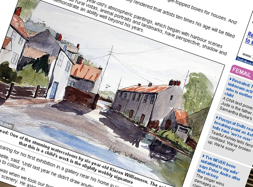"Do zeszłego roku nie malował. Punkt zwrotny nastąpił, gdy byliśmy na wakacjach w Devon i Kornwalii w zeszłym roku. Kieronowi spodobała się sceneria i poprosił o czystą kartkę papieru. Potem zaczął malować" - powiedziała mama młodego artysty.