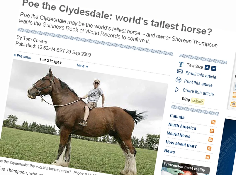Dotychczasowy rekordzista mierzy sobie zaledwie 2 metry. "To znaczy, że Poe przegania go o 5 centymetrów" - chwali się prasie właścicielka olbrzyma. "Rekord mamy właściwie w kieszeni" - nie ukrywa entuzjazmu.