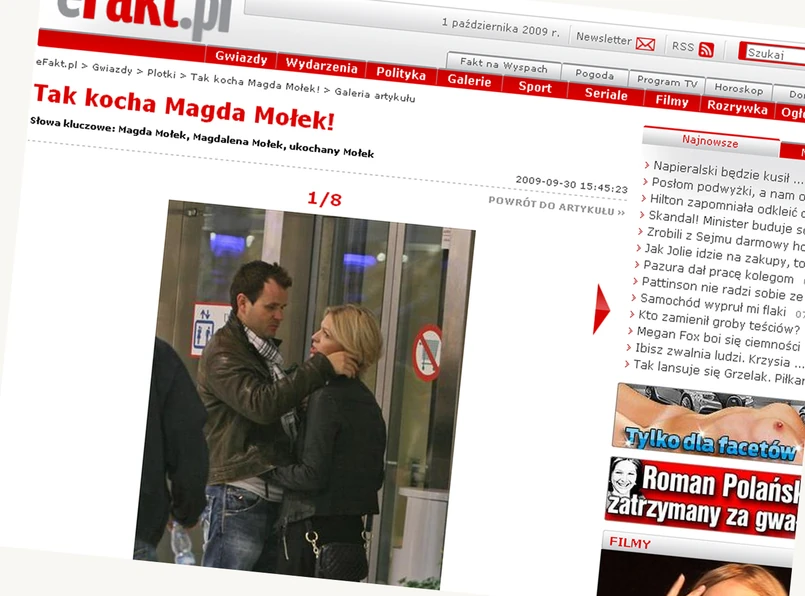 Fotoreporterzy "Faktu" przyłapali Mołek i jej narzeczonego Remigiusza Kasztelnika w galerii handlowej. Para, chodząc po sklepach, czule się obejmowała i całowała. Jak twierdzi tabloid, właściwie więcej było tego obejmowania i całowania niż zakupów.